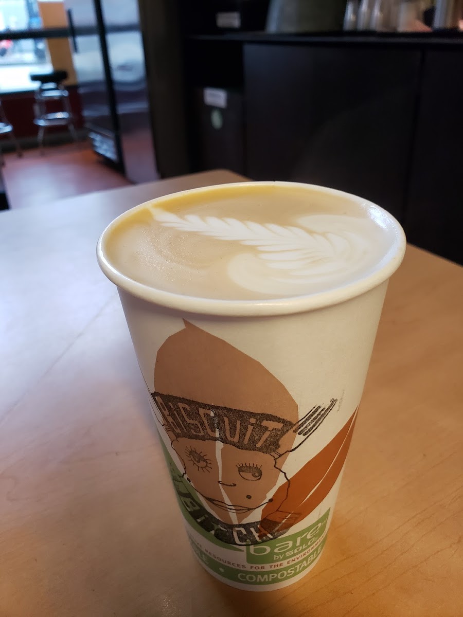 Recommended to come here and try some biscuits. I ordered the biscuits with the gravy and scrambled eggs on top and cheese. It was good and filling. Definitely something different. Also ordered a pumpkin coffee drink but I didn't really like it, tasted watery. Girl at front was very friendly, great service!